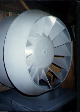 Sizes are from 300 ( 9.75" wheel diameter) to size 1800 ( 60" wheel diameter ) constructed of Steel, Stainless Steel or Aluminum to meet AMCA "A","B"or "C" Spark Resistant Construction.